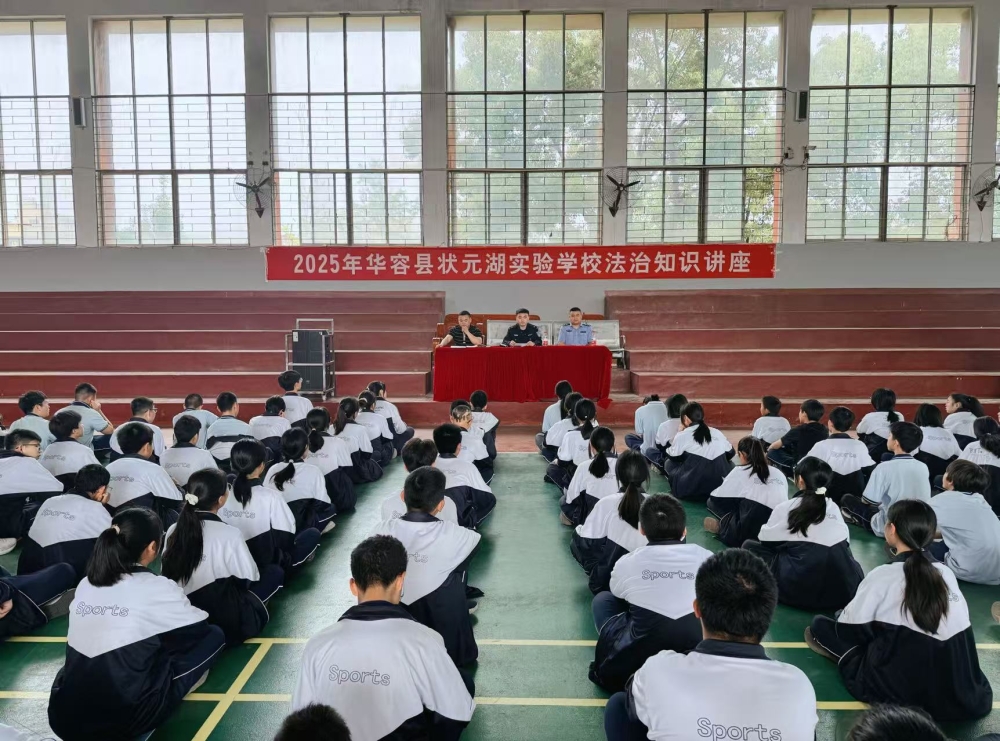 4月11日,状元湖实验学校举行 “法治进校园” 活动。本次活动特邀华容县城东派出所的朱亮警官,为全校师生呈上一场生动且极具实用性的法治讲座。