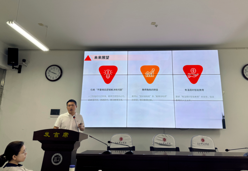 活动最后谢校长对活动进行总结点评。他充分肯定了教师们积极探索、勇于创新的精神,对讨论与分享中涌现的优秀观点和实践成果给予高度评价。同时,结合学校发展规划,为学校在人工智能时代的教育教学改革指明方向,鼓励教师们将活动收获转化为实际行动,推动学校教育高质量发展。