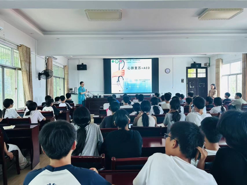 活动当天,县人民医院的医生们受邀来到学校,为学生们带来了一场精彩纷呈的急救知识讲座。医生们强调了心肺复苏(CPR)在急救中的重要性,指出心肺复苏是挽救心脏骤停患者生命的关键手段。随后,医生们详细介绍了心肺复苏的操作步骤,从判断患者意识、呼叫救援、进行胸外按压到人工呼吸,每一步都讲解得细致入微。