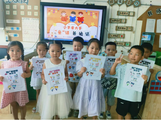 为贯彻落实国家语言文字工作方针,增强师幼语言文字规范意识,营造良好的普通话交流环境,近日,我园积极响应全国“推普周”号召,开展了形式多样的普通话推广活动。