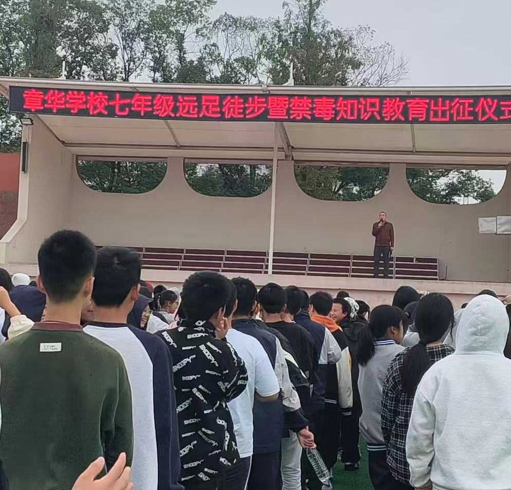 10月28日,华容县章华学校组织七年级全体学生举行“青春健行,绿色无毒”为主题的徒步远足暨禁毒教育基地参观活动,将体育锻炼与知识学习相结合,增强班级凝聚力,培养学生吃苦耐劳、坚持不懈、团队合作的精神。