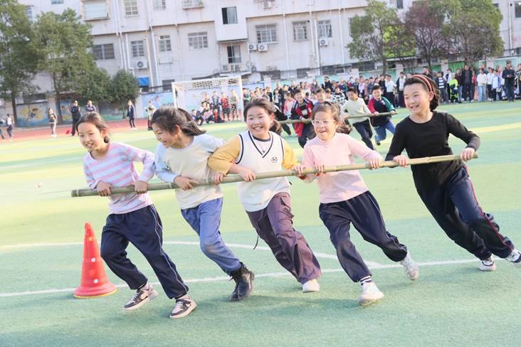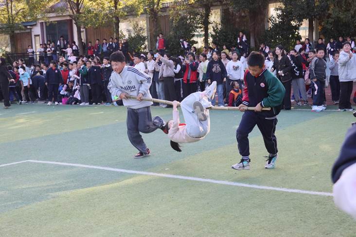此次运动会按照学生年龄特点精心安排,分单项和团体两类,共14个项目,集趣味性、娱乐性、团结性和竞争性于一体,既有袋鼠跳、小青蛙跳荷叶、两人三足、跳绳接力赛、赶“小猪”、抬“小猪”、齐头并进等游艺项目,也有100米、200米、400米、4×100米接力、跳高、跳远等田径项目和拔河。