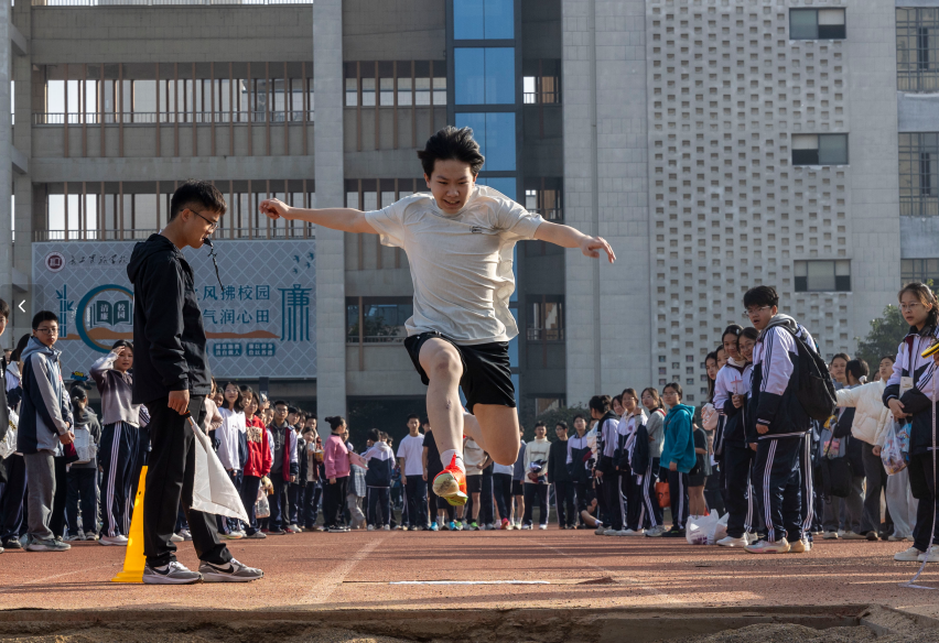 田赛区域同样精彩纷呈。跳高运动员一次次轻盈跃起,挑战新的高度;跳远选手助跑、踏跳、腾空,在沙坑中留下青春的足迹。他们身体划出的优美弧线,仿佛是他们放飞的、渴望抵达更高更远的梦想。每一位站上赛场的学子,都在用汗水诠释着“快乐参与”的真谛——无论胜负,拼搏过即是英雄。