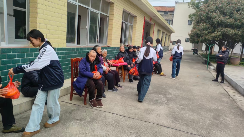 下午14时,全体参与人员在学校集合完毕,怀着激动与期待的心情,整齐有序地前往敬老院。活动伊始,校长代表万庾中学向敬老院负责人表示了亲切慰问,并亲手送上了大米、食用油、牛奶和水果等慰问物资,表达了学校对老人们的关心与祝福。
