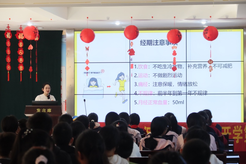 县妇幼保健院家庭性教育咨询师关典老师应邀走进校园,以科普视频和人体图示为媒介,将男、女生内生殖器的构造与功能一一呈现。她指着屏幕上的解剖图,语气平和,用词精准,没有一丝躲闪与含糊——仿佛在讲解自然课上的一朵花、一片叶。