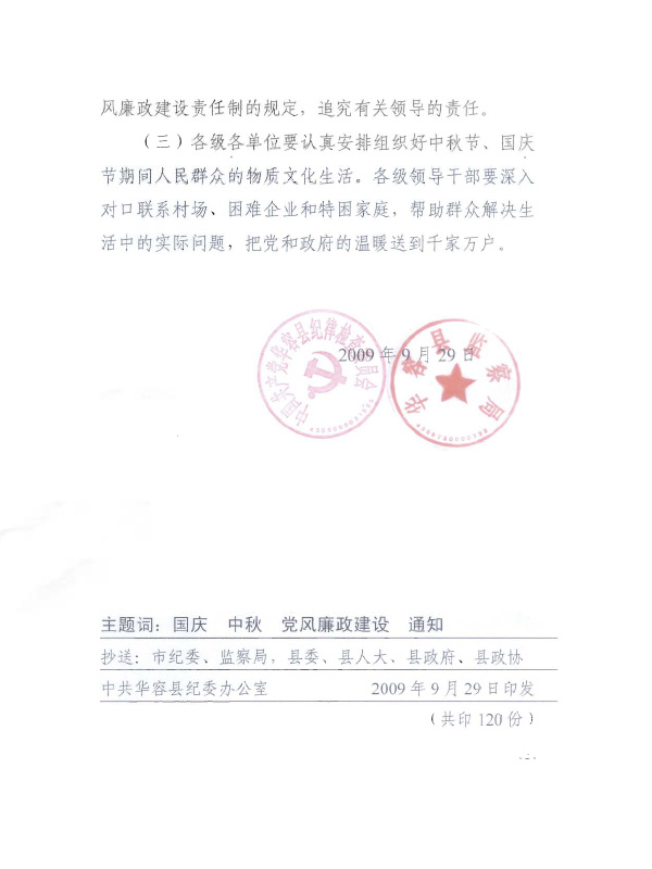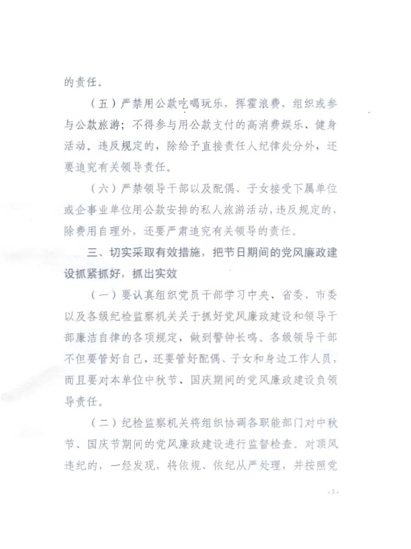 关于加强中秋节国庆节期间党风廉政建设的通知