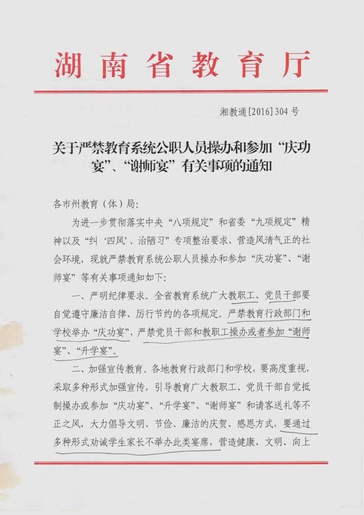 关于严禁教育系统公职人员操办和参加“庆功宴”“谢师宴”有事项的通知