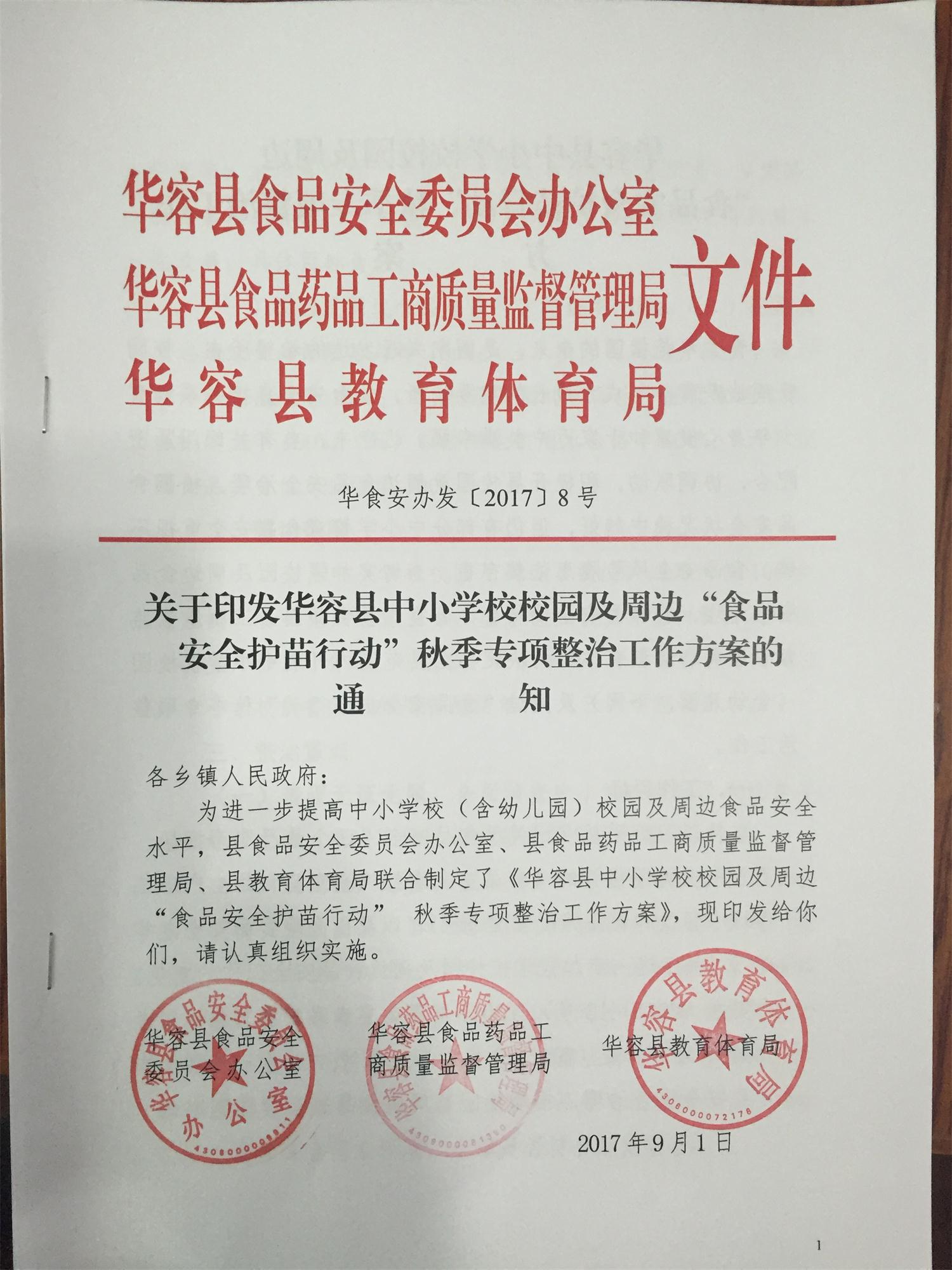 关于印发华容县中小学校校园及周边“食品安全护苗行动”秋季专项整治工作方案的通知(点击下载)