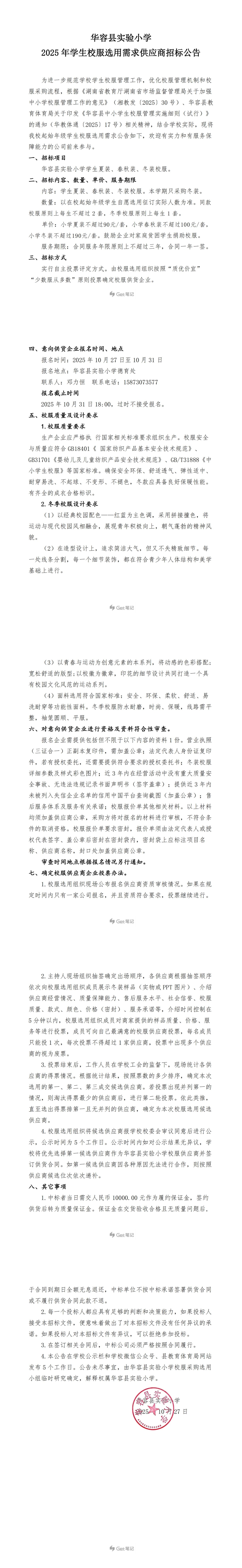 华容县实验小学2025年学生校服选用需求供应商招标公告.pdf