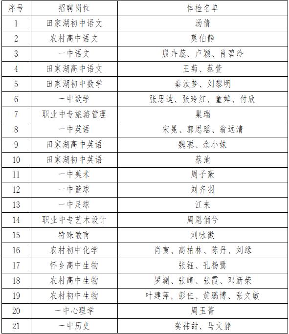 根据《华容县教体系统2020年公开招聘教师公告》规定要求,按照《公务员录用体检通用标准(试行)》中相关体检项目和体检标准,下列参检人员体检合格: