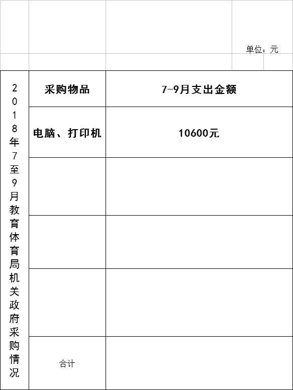 2018年7-9月教育体育局机关政府采购情况