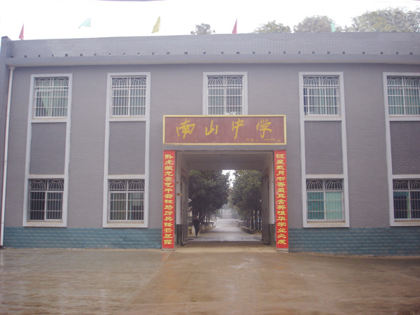 南山中学绿树成荫,硕大的校树---樟树比比皆是,建筑美观,环境非常优美。校园布局合理,教学、生活、运动三区分离,有一个面积达10382 m2的田径场和360 m2的器械场,有2个标准篮球场,1个排球场,一个羽毛球场及14个乒乓球台,有252m环形跑道和100m直跑道各一条,体育场地生均达24.6m2;有图书室、阅览室各一间,图书藏量2万余册,生均40册;有厕所192 m2,蹲位57个(其中男用34个);学校有各类建筑11栋,其中教学楼2栋,实验楼1栋,办公楼1栋,食堂一栋面积达1760 m2,生均达3.47 m2;有2栋总面积达1426 m2的学生公寓,生均面积达2.81 m2;学校绿化面积达13979 m2,生均达27.57 m2;学生学习、生活,居住都比较宽敞、舒适。