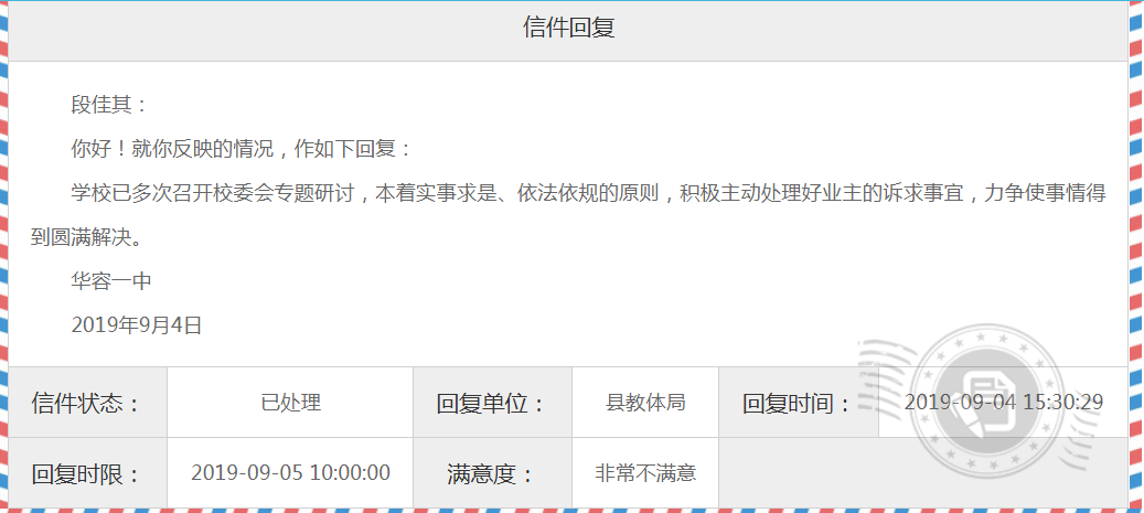 经双方协调,此事项已妥善处理。 华容县第一中学 2019年9月23日 |