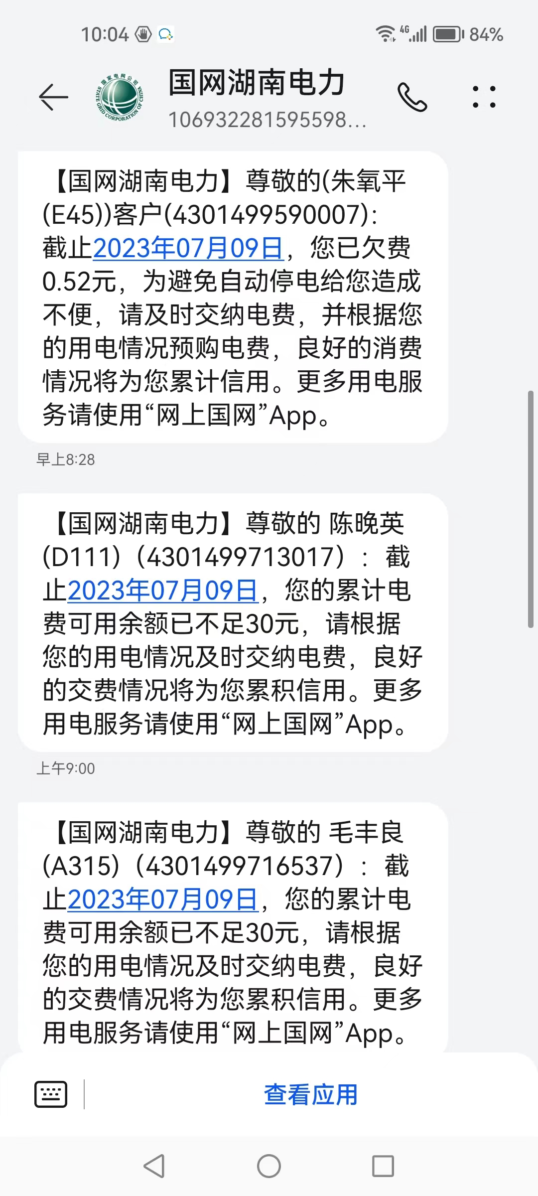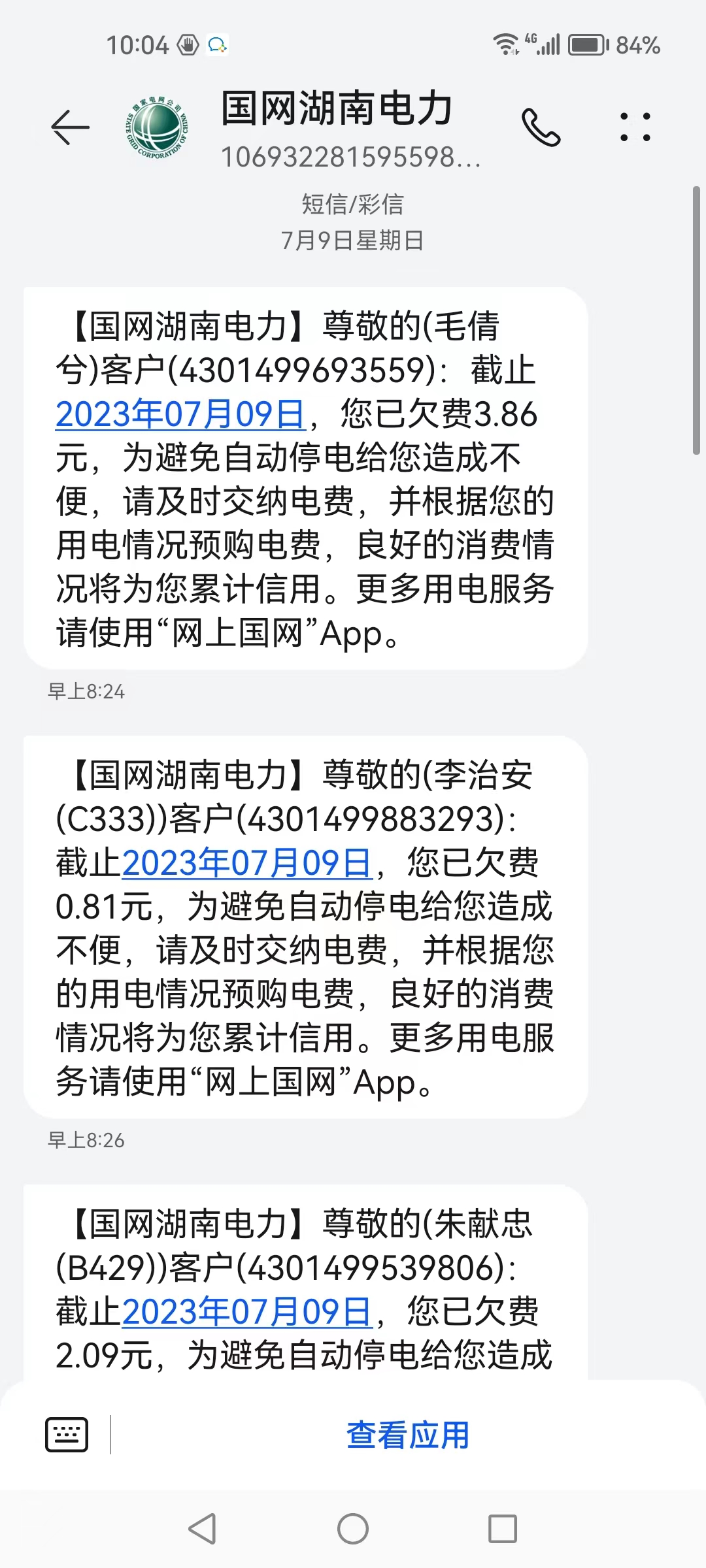县电力公司将不同客户的联系方式全部设置为我的18390189555的手机号码,导致我的手机每天就是频繁地接受电力报修、送电、停电、客户欠费等各种无关骚扰信息(有图为证),至今已确定张燕飞(D553)、罗传平(B455)、邹雄荪(G74)、青龙庙2楼(A545)、陈晚英(D111)、易播夫(D71)、李看明(C118)、喻赍松(城东68)、朱氧平(E45)、朱四清(D871)、李治安(C333)、毛丰良(A315)、朱献忠(B429)、毛倩兮等等,都是绑定我的手机号码。请电力公司本着以人民为中心、以客户为中心的服务理念,以更加踏实的作风,实事求是地把客户的真实号码确定后改过来,不要让无关客户受尽无谓骚扰。 附件1:237183330.jpg 附件2:355600325.jpg 附件3:419837850.jpg 附件4:541742945.jpg 附件5:659415507.jpg 附件6:1357721510.jpg |