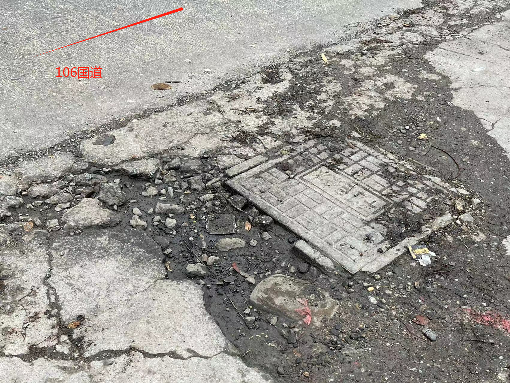 湖南省平江县梅仙镇团山村,村委会对面,炫彩文具店前面106国道路基损坏!原路基完好,后水利局埋自来水管,填补好后,后来慢慢被车压坏! 附件1:b936622661eed247205ef4e85443c1a.png 附件2:a89b29e55262892eb1b934d38790b4f.png |