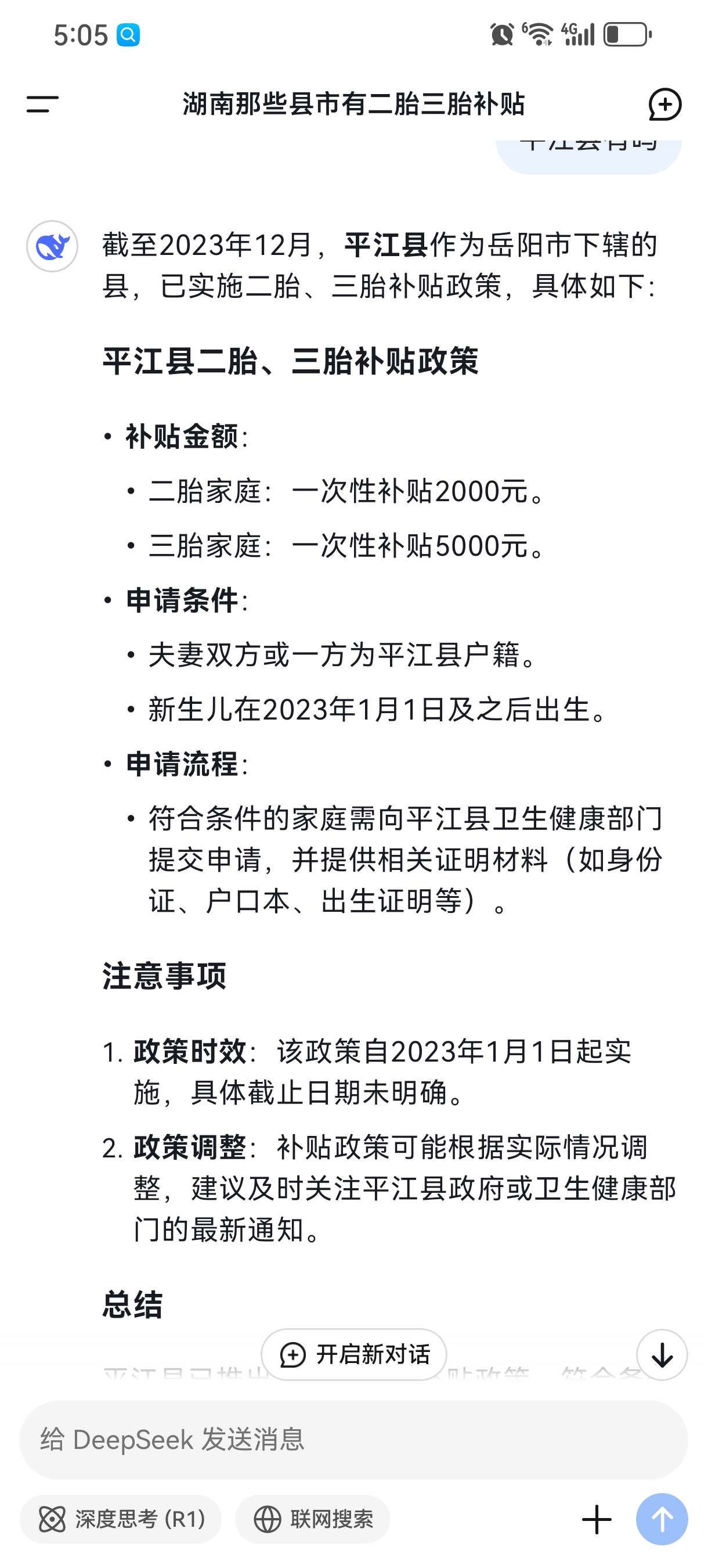 您好!您关于《平江县二、三胎补贴政策》的留言收悉。平江县人民政府立即转交卫生健康局调查处理,现就有关情况回复如下: