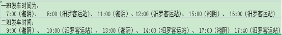 您好,来信收悉,现回复如下: 为了方便湘阴与汨罗两县市人员交流,满足人民群众出行需求,经过湘汨两县市交通主管部门批准,2021年12月1日,湘阴城市公交客运有限公司与湖南众捷汽车运输有限责任公司联合开通湘汨城际公交,取代原有班车客运。 运营线路:湘阴至汨罗(102路) 运行线路:湘阴汽车站——G240——湘汨路——屈原大道——汨罗江大道——汨罗客运总站。 疫情期间发班时间如下图: