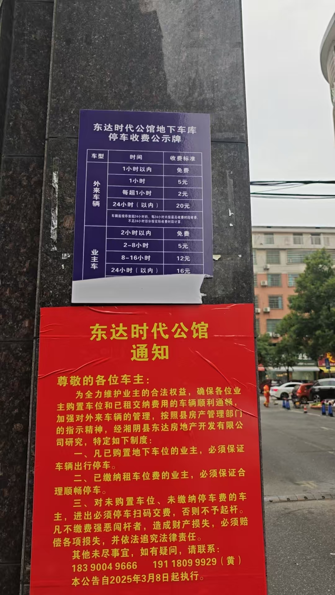 | 标题: | 湘阴县东达时代小区开发商湘阴县东达房地产开发有限公司未按《湘阴县机动车停放服务收费管理实施细则》要求公示《机动车停放服务收费公示牌》 |