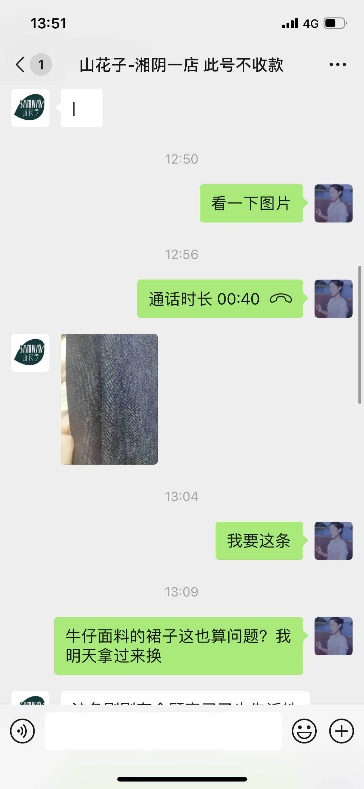 领导好,我于25年2月27日晚在山花子店铺购买连衣裙一条,当时销售跟我说打折299,因为是牛仔面料,又考虑打折,所有有少许刮丝我也没有在意,3月12日,事隔14天,卖家在朋友圈发这个裙子打折199,我微信询问,说是有瑕疵,有刮丝,但是朋友圈并没有注明,我提出看图片,卖家没有发,然后我发了语音给她,她说这是其他店的衣服,公司定的价格,我让她发照片给我,接着她发了一个不算瑕疵的瑕疵图片给我,看到图片后我就说我要这个裙子,卖家没有回信息,我再次询问,她说已经卖了,截图为证,在她发朋友圈我跟她沟通不过九分钟,到说卖了不过30余分钟,我是不信的,但是我也没有资格看监控,卖家也没有提供让我合理信服的理由,整个过程没有感受到卖家积极处理事情的态度,哪怕说出一个合理且让人接受的理由,说一两句让人能体谅的话,甚至后面我说她信息都不回,后面她说她在理货没有空,基于卖家这样的售后与态度,还有如此快速的降价,我要求卖家退差价或者退款,麻烦有关部门帮忙协商,谢谢 附件1:AEEE1BE8-4946-4C5E-8F29-D1606CCAD184.png |
