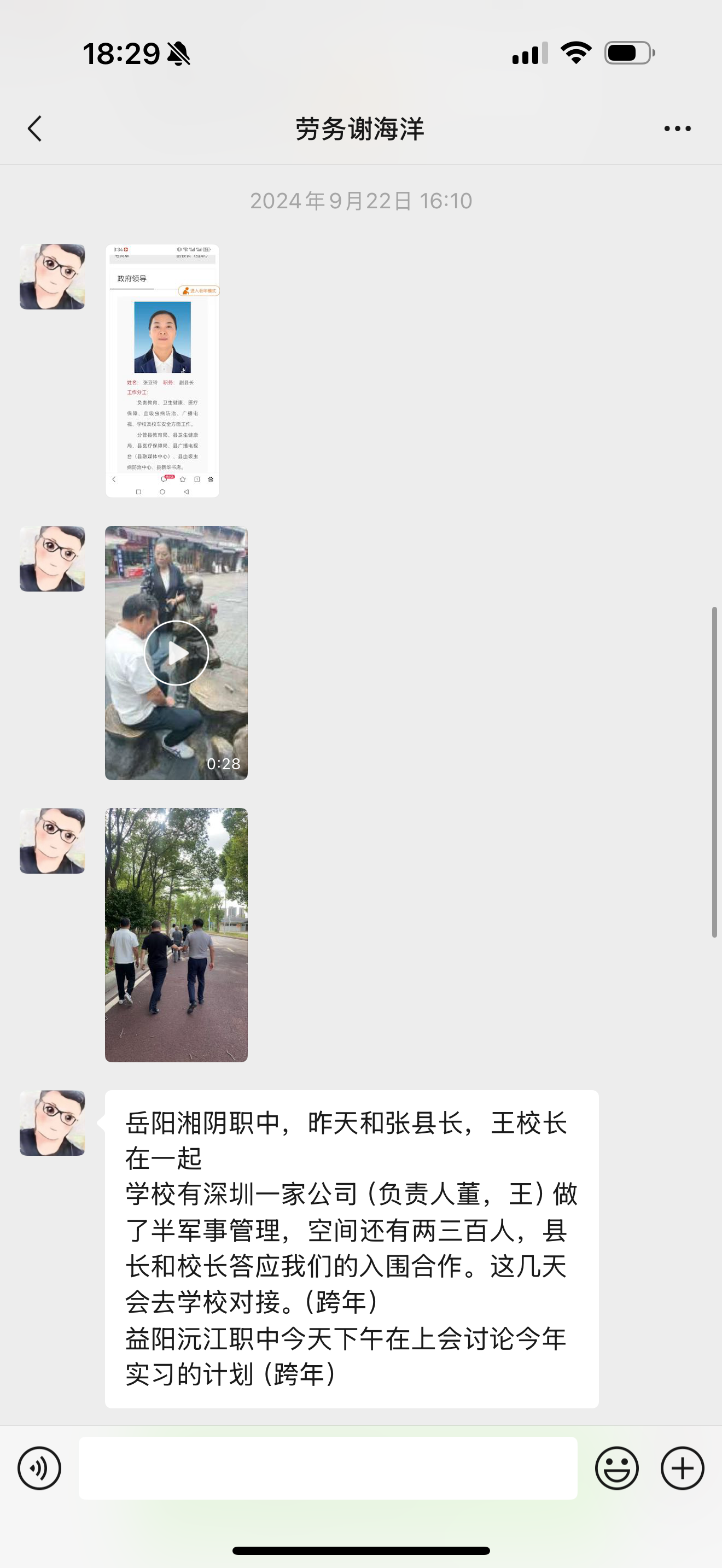 尊敬的网友: 您好,您的来信已收到,通过调查了解现就反映的问题回复如下: 一、关于学生实习方面,学校一直是根据各级相关政策和规定依程序组织开展的。从未收到过张某副县长任何关联的工作指示。 二、学校未与您反映的谢某洋有任何正式接触,也无业务往来。经了解,未发现有相关负责人私自接触或承诺的情况。 三、我校学生实习工作有稳定的合作企业,合作企业都是经多方考察确认,学校、企业、家长签订了三方实习协议,实习活动组织严密,没有第三方干预。 对于信中所提及情况,学校毫不知情,也与我校无任何关系。如当事人确因轻信他人导致经济受损,建议您通过法律途径解决。感谢您对我们工作的理解与支持! 2025年11月3日因您的电话信息保密无法联系沟通,望您理解! 湘阴县第一职业中等专业学校 2025年11月8日 |