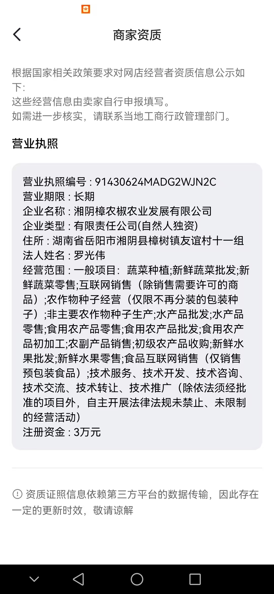 2026年01月15日通过抖音入住商户湘阴农臻选(湘阴樟农椒农业发展有限公司,地址:湖南省岳阳市湘阴县樟树镇友谊村十一组),购买樟树港辣椒种子。 发现购买到的种子标签并不符合《中华人民共和国种子法》和《农作物种子标签和使用说明管理办法》相关法律法规所规定的标签应当标注的内容,请求农业农村局确认商家销售的种子有违法行为,并依法处理。 附件1:微信图片_20260120101408_449_17.jpg 附件2:微信图片_20260120105951_464_17.jpg 附件3:微信图片_20260120105952_465_17.jpg |