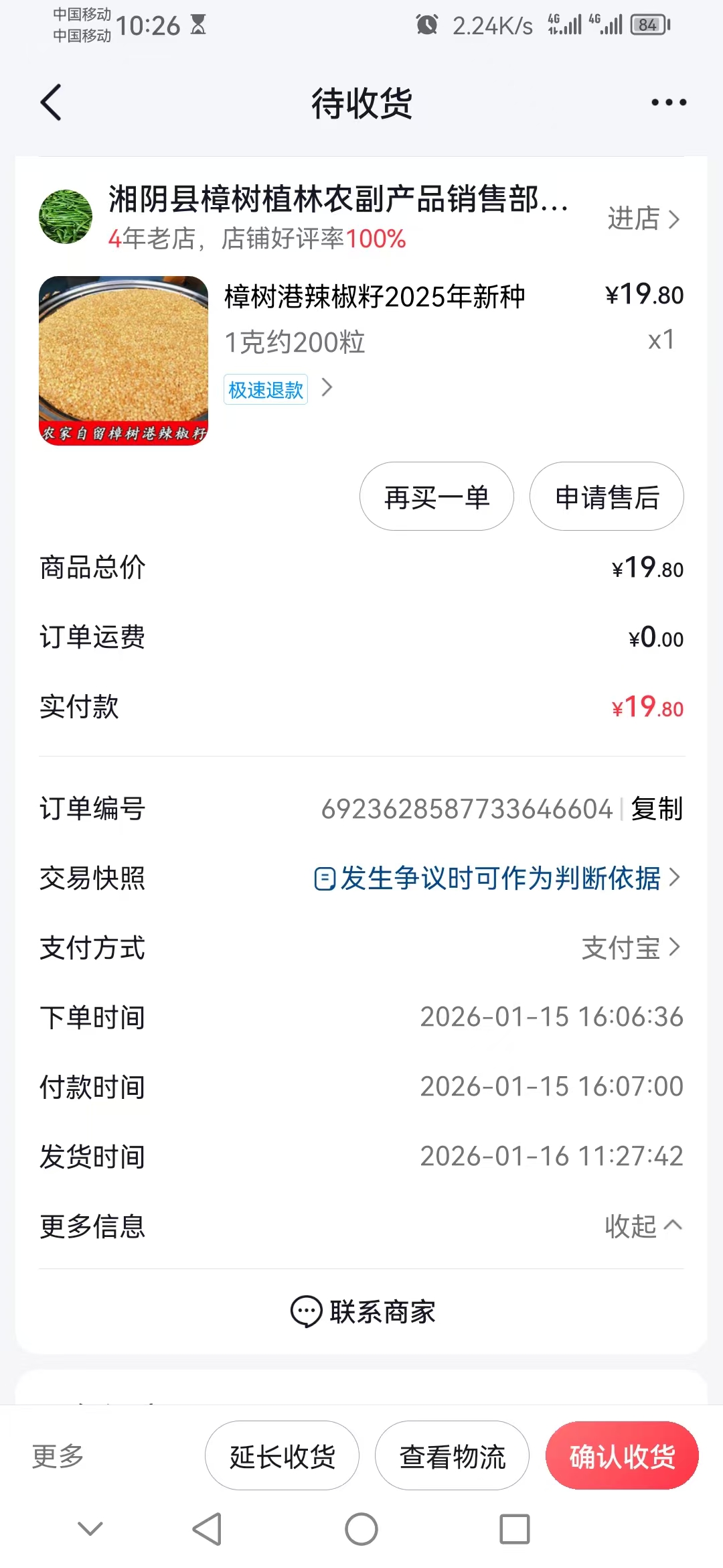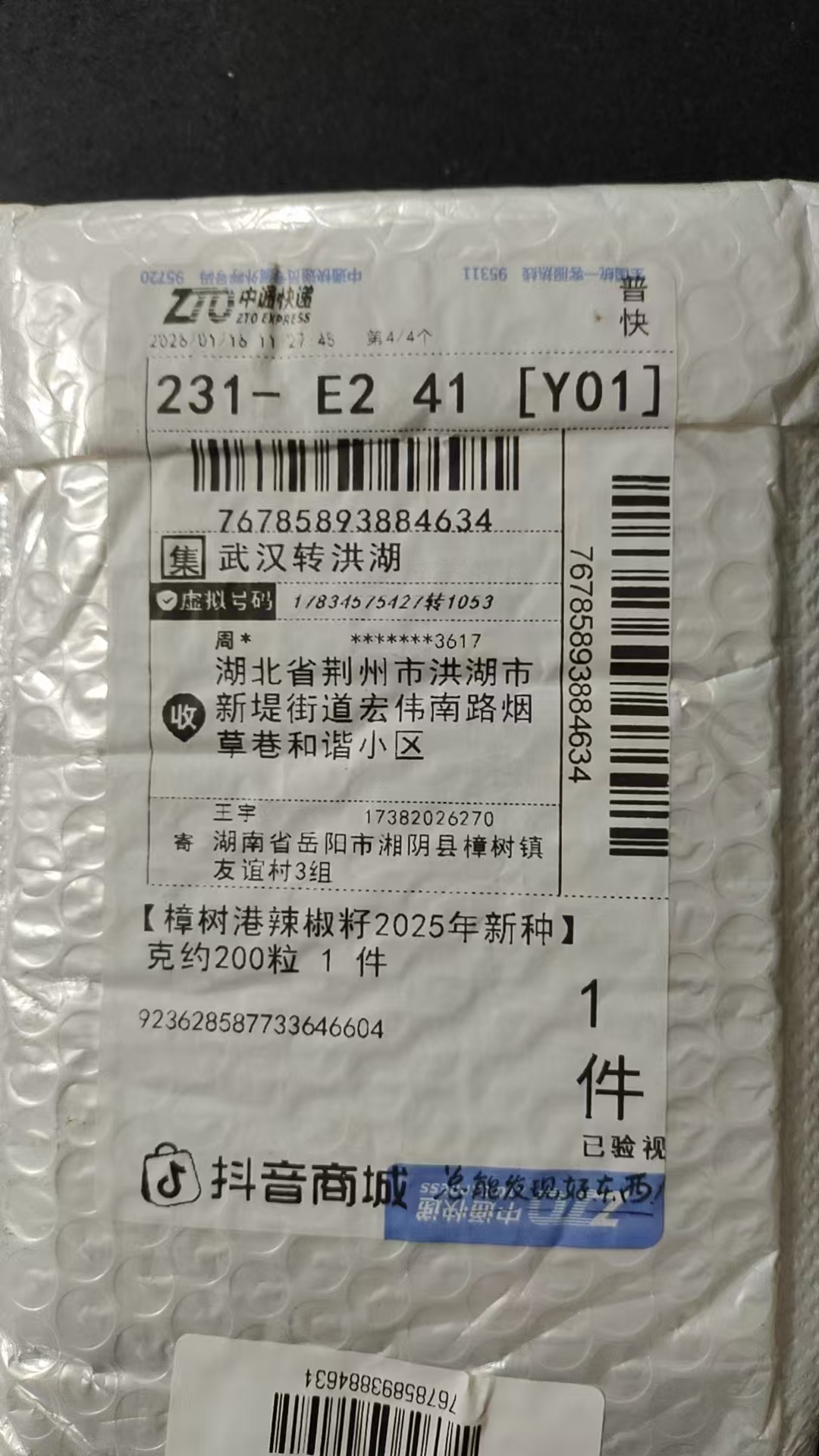 2026年01月15日通过抖音入住商户湘阴县樟树植林农副产品销售部的小店(湘阴县樟树植林农副产品销售部,地址:湖南省岳阳市湘阴县樟树镇文谊新村),购买樟树港辣椒种子。发现购买的种子无任何标签信息,根据《中华人民共和国种子法》第四十八条(二)种子种类、品种与标签标注的内容不符或者没有标签的。其认为该商家销售的种子属于法律法规规定的假种子,请求农业农村局确认商家销售的种子有违法行为,并依法处理。 附件1:微信图片_20260120112116_473_17.jpg 附件2:微信图片_20260120112111_472_17.jpg 附件3:微信图片_20260120112311_478_17.jpg 附件4:微信图片_20260120112204_477_17.jpg |