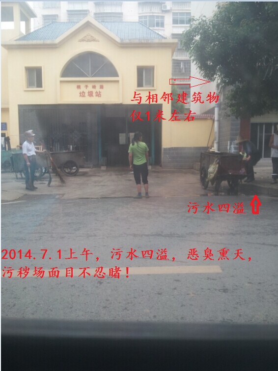 每到清运垃圾的时候,从各方来的人力垃圾车便打拥堂似的汇集于该垃圾站门前,多的时候有10台车之多,把垃圾卸下来之后哪些腐烂变质的垃圾所产生的污水四处横溢,以及大量的垃圾渗漏液长期所产生的严重影响。如今,夏天来临不仅到处蚊蝇乱飞、老鼠乱串、臭味更是“十里飘香”,过往行人无不掩鼻跑步而过,当地的居民及商家无一不是苦不堪言、怨声载道、叫苦连连。纷纷表示此垃圾站建起了多少年就被臭了多少年,这种恶臭简直就受不了,家里窗户根本24小时不能开,因为这些因素所以常常导致垃圾站旁居民患呼吸系统疾病的人加多、病情加重。