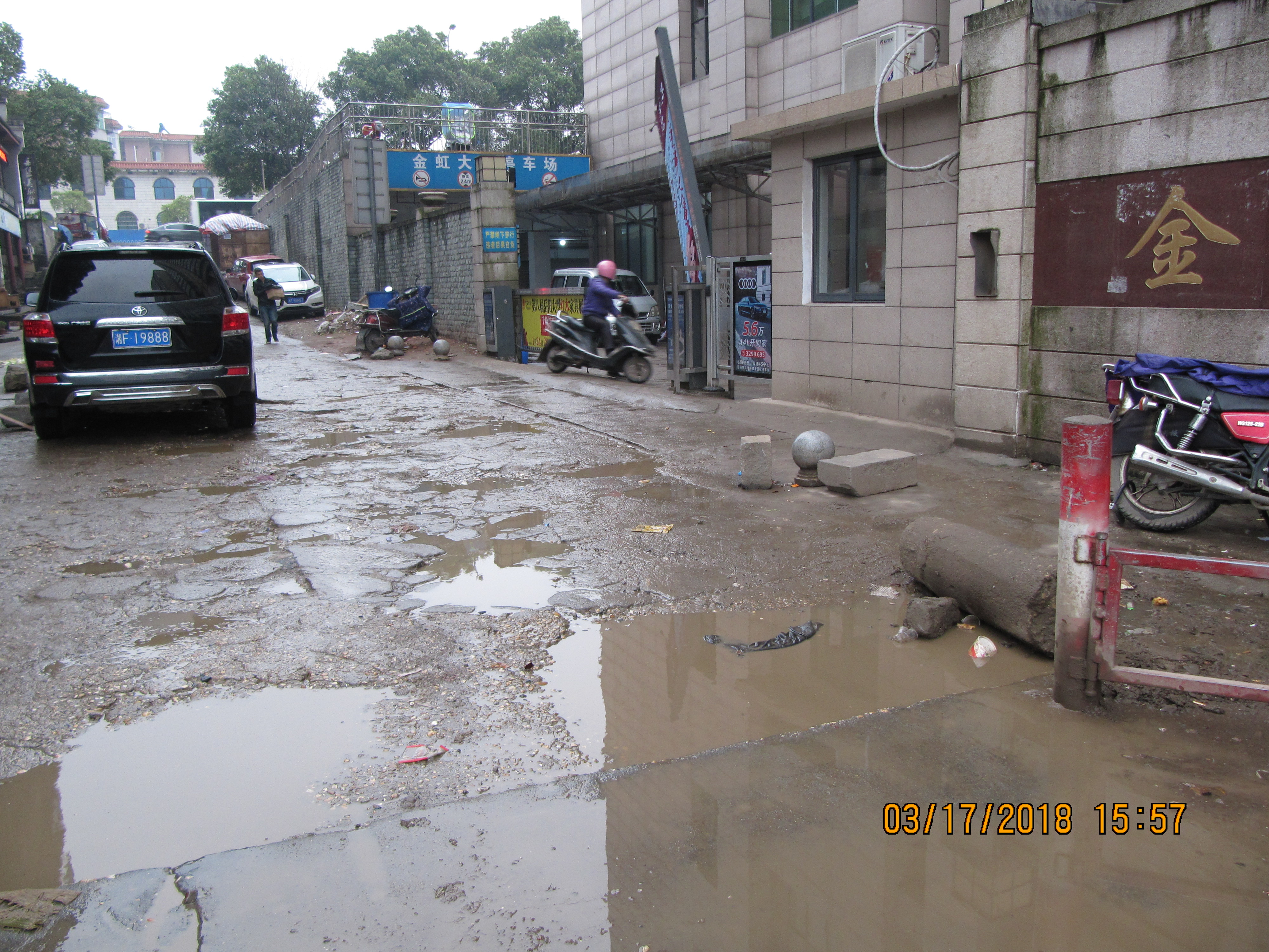 | 内容: | 花板桥金虹大厦大门前一条路,自住进来起到现在已经第八个年头了,这条路一直还是破烂不堪(图片附后)。不仅严重影响市容,而且对小区内及周边的住户的生活带来极不方便,人们苦不堪言,怨声载道。希望政府有关部门出面督促有关责任人完善。谢谢! |