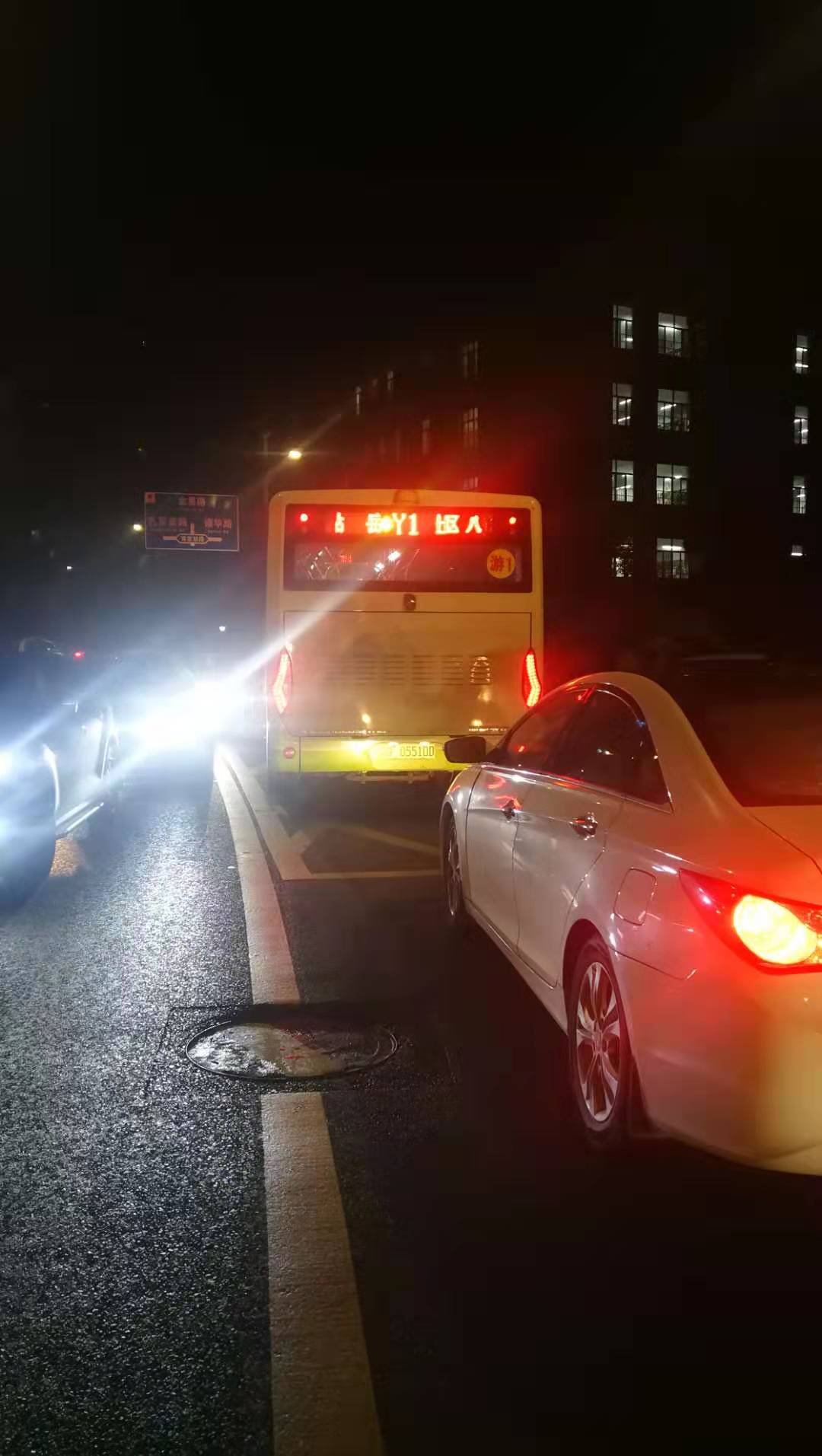2019年11月26日晚上19:30左右一辆牌照号为“湘F05510D”的 Y1 路公交车,在路过湘一南湖学校大门口时,因为大门口交通堵塞,大肆鸣笛好几分钟,路过的市民上前劝导说“这是学校不要鸣笛”时也不听劝,甚至在道路旁的教学楼里的学生都打开窗户大喊不要鸣笛也不听。