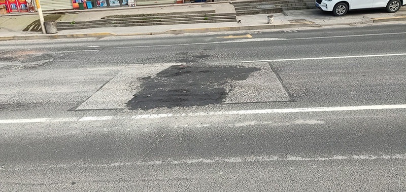 107国道云溪段云溪工业园门口红绿灯下有几个大坑 早上开车经过好险