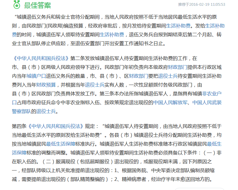 | 标题: | 关于退伍军人待安置期间的生活补助 |