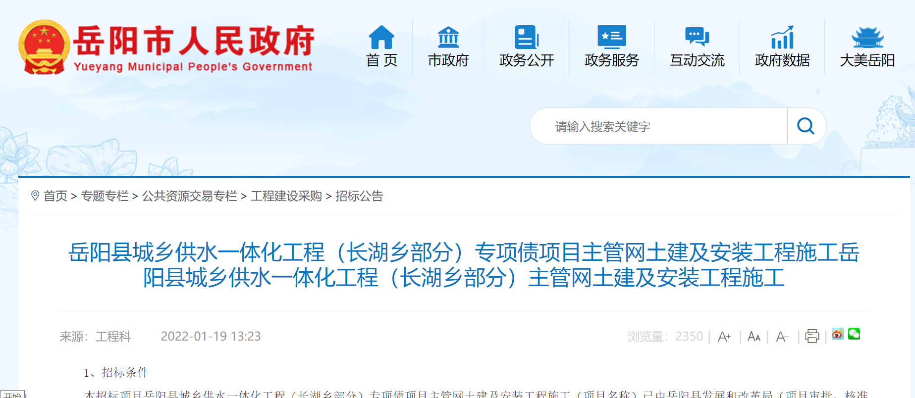 标题: 岳阳县城乡供水一体化主管网土建及安装工程收费异议?