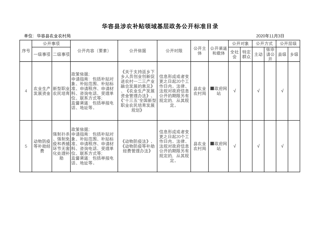 华容县涉农补贴领域基层政务公开标准目录(农业农村局编制)