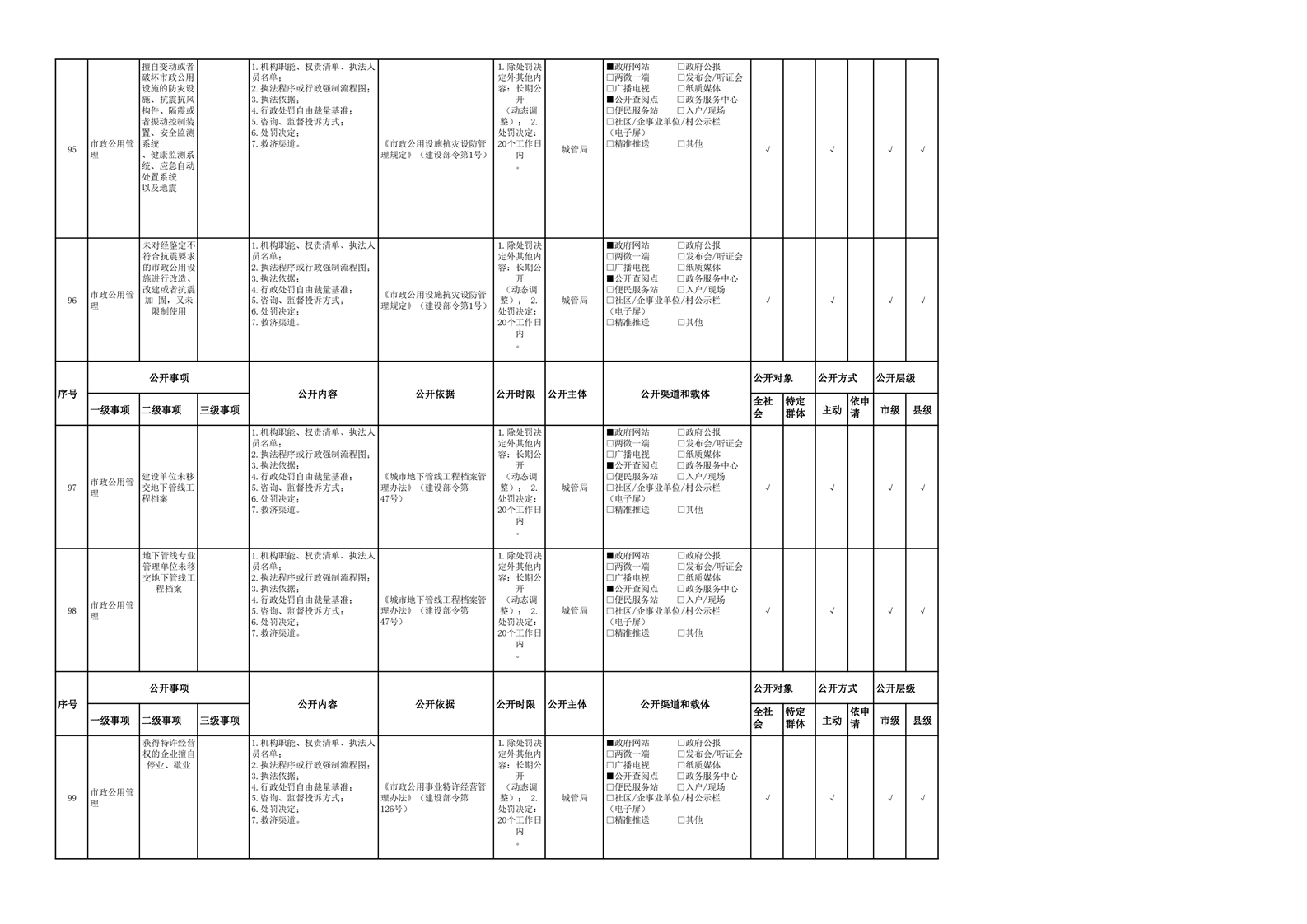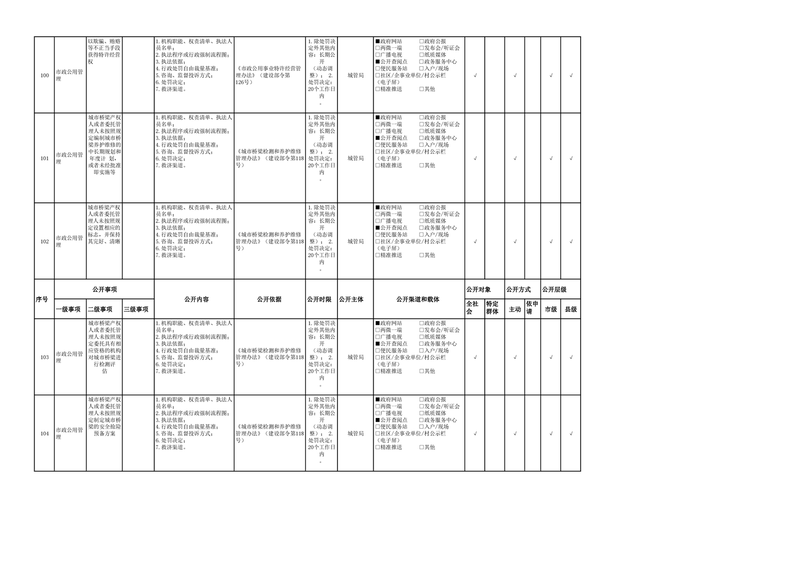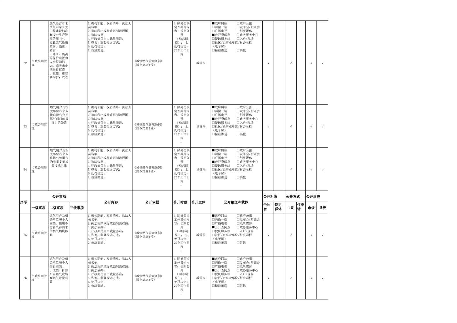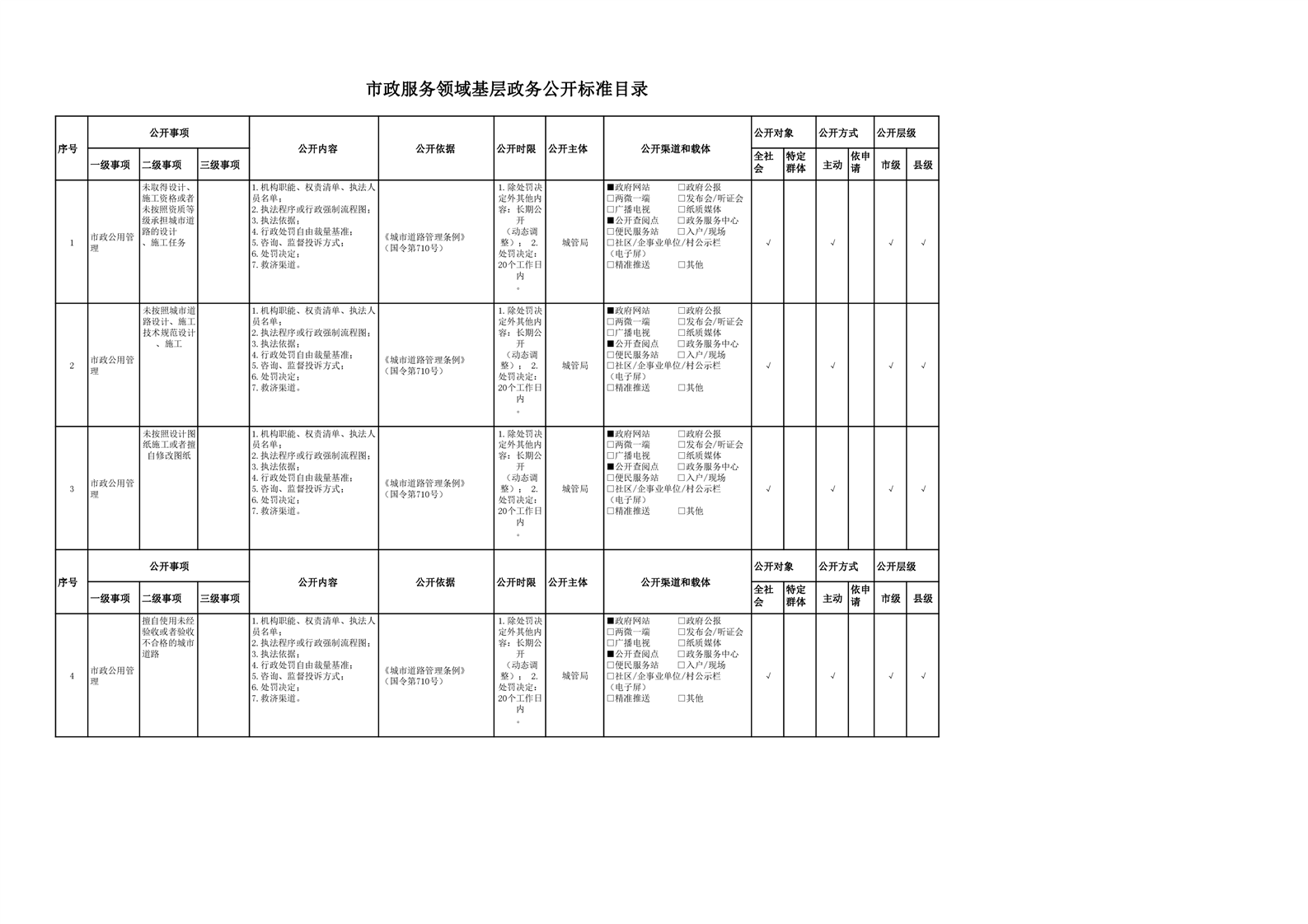 华容县市政服务领域政务公开标准化目录(城管综合执法局编制)