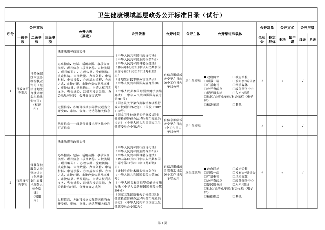 华容县卫生健康领域基层政务公开标准化目录(卫健局编制)