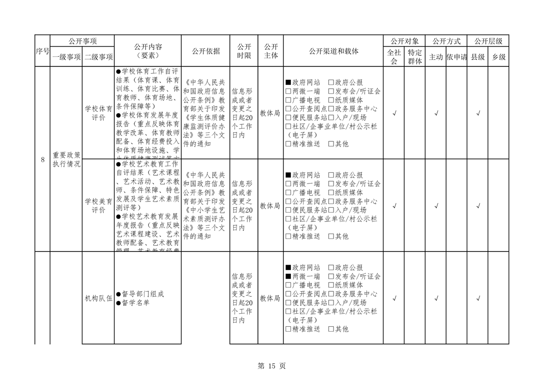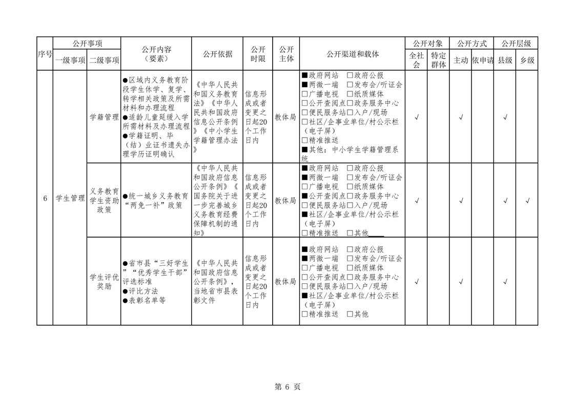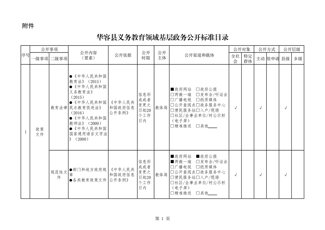 华容县义务教育领域基层政务公开标准目录(教育体育局编制)