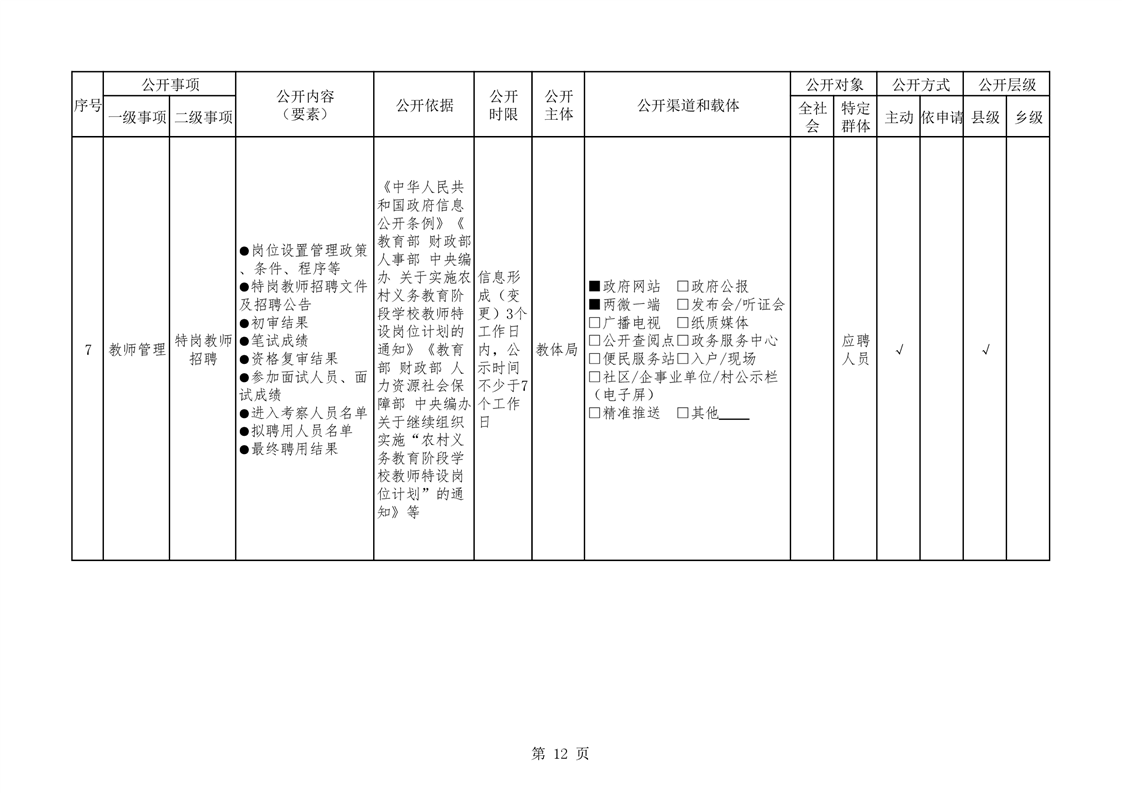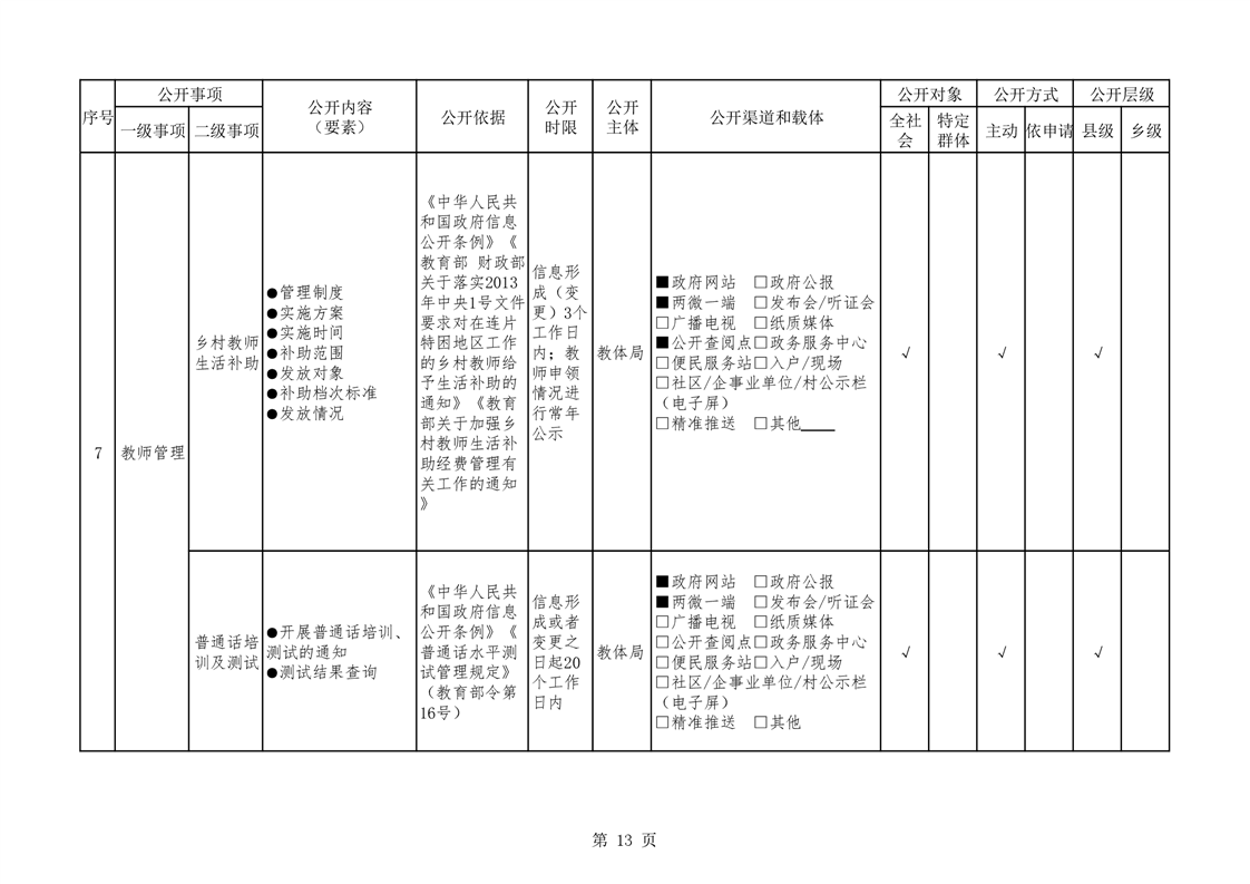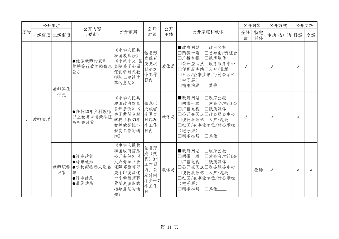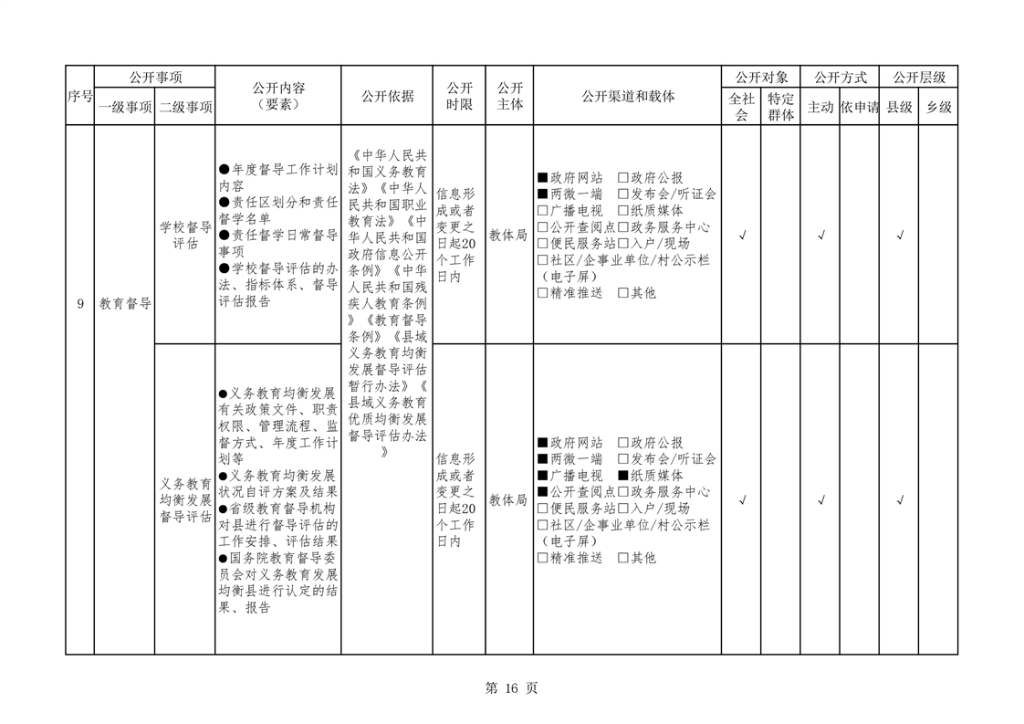 华容县义务教育领域基层政务公开标准目录(教育体育局编制)