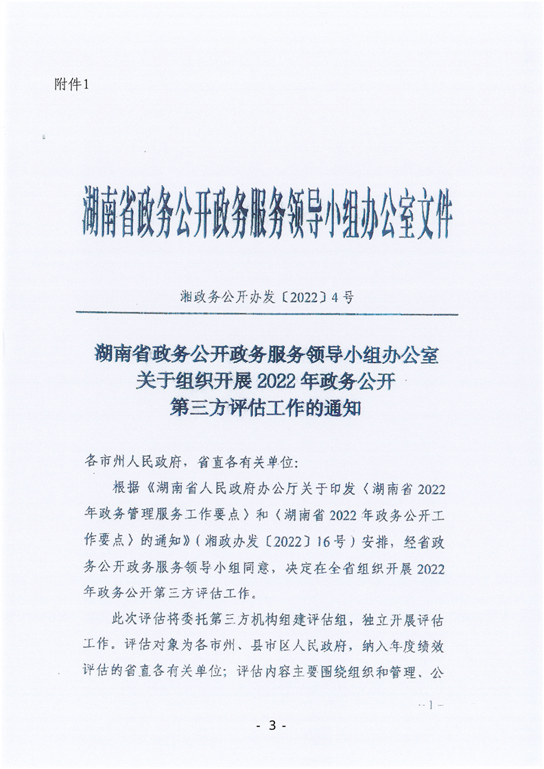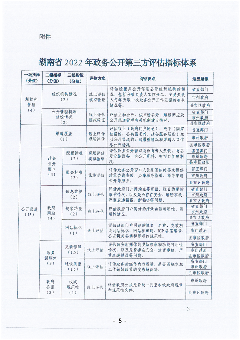 【工作落实】关于迅速落实《湖南省 2022 年政务公开 第三方评估指标体系要点》的通知