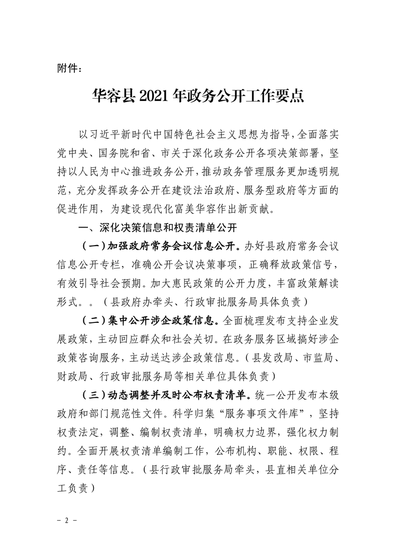 【工作落实】关于印发《华容县2021 年政务公开工作要点》的通知