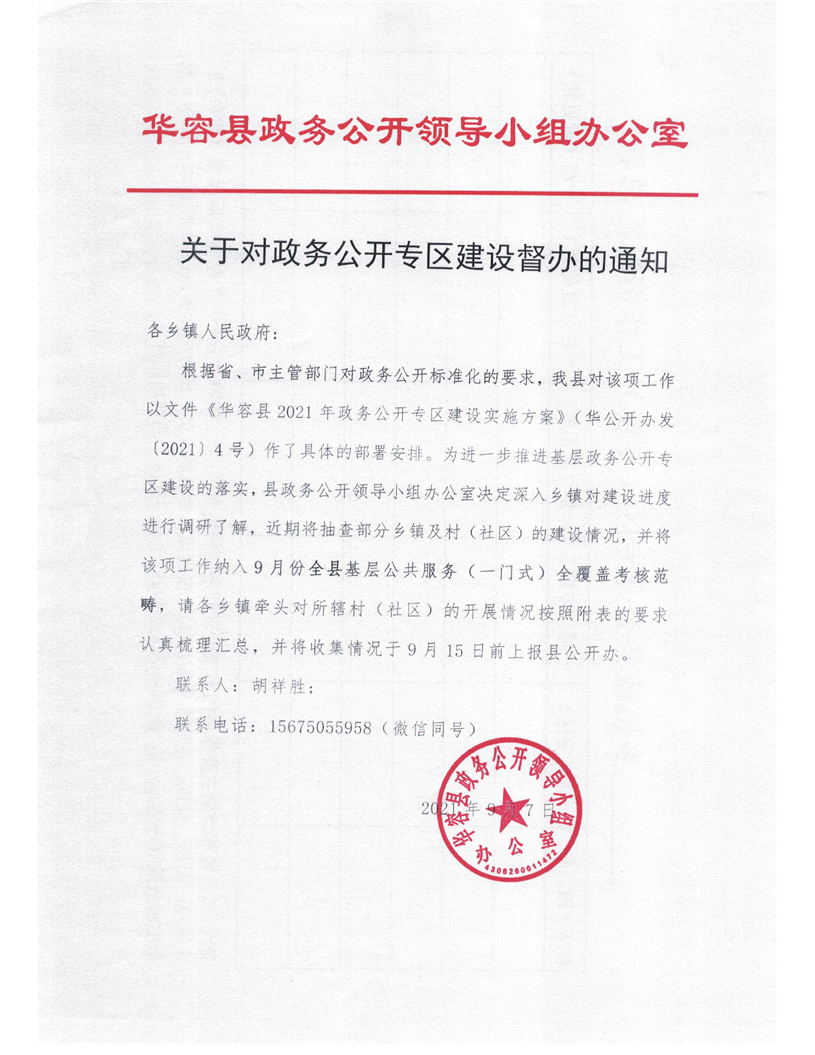 关于对政务公开专区建设督办的通知