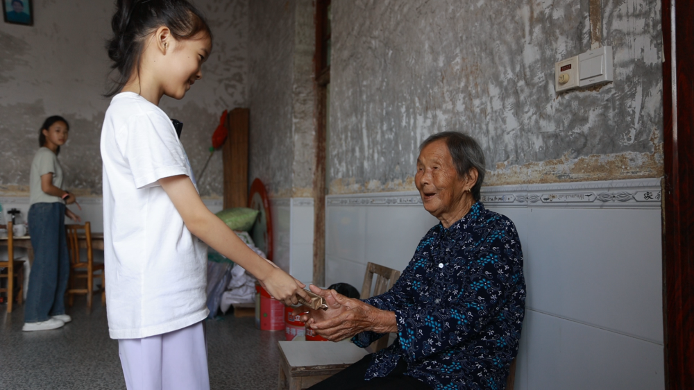 为保障大家的基本生活所需,乡政府给回到垸里的居民发放大米、面条、食用油等生活必须物资,中秋节,又挨家挨户送上了月饼、八宝粥等慰问物资。 健健康康就是最好 “今天是中秋节,一人吃一个月饼。”闵新泉从房里拿出来一盒月饼,分给家里的大大小小。小孙女懂事,第一个就先送到了姥姥手里。